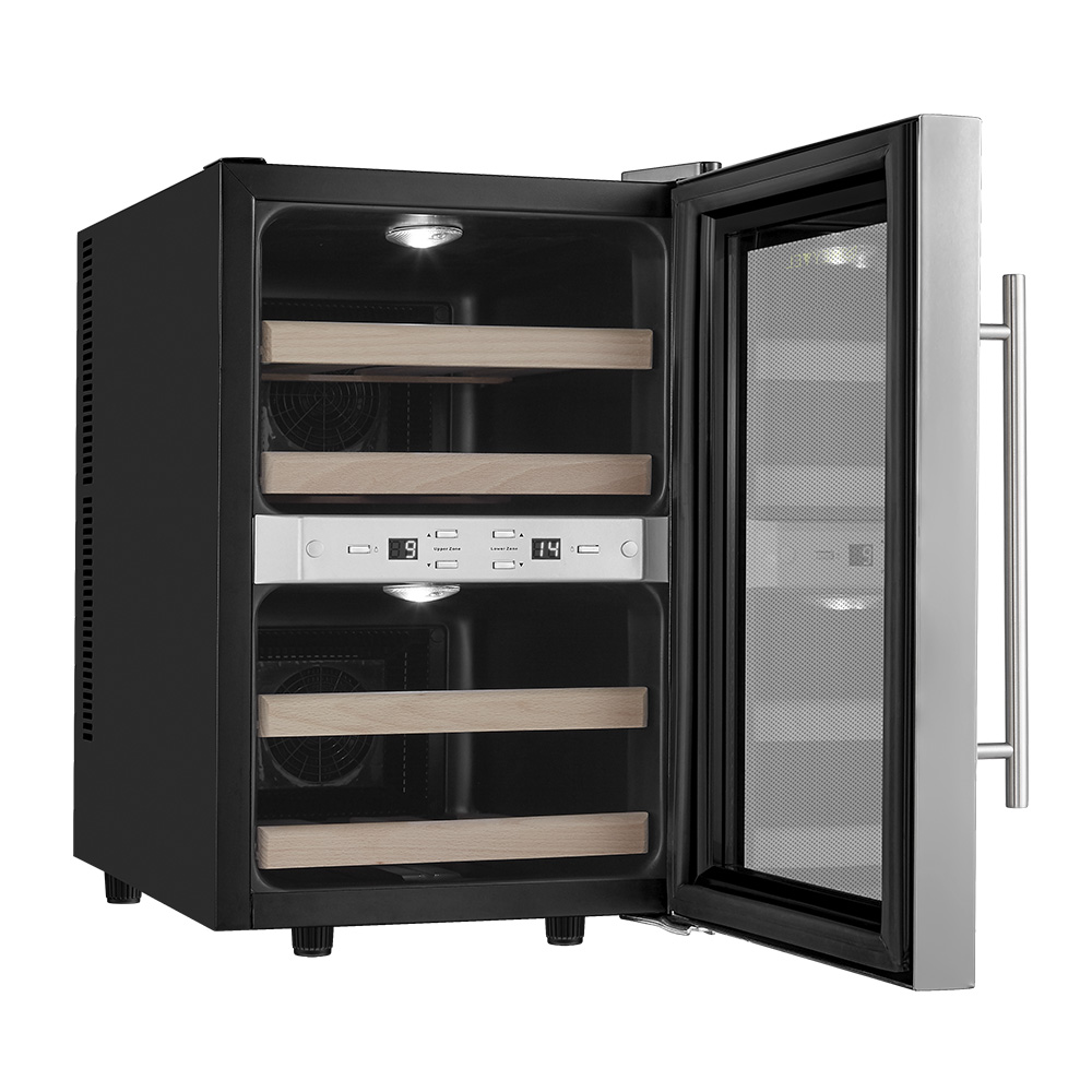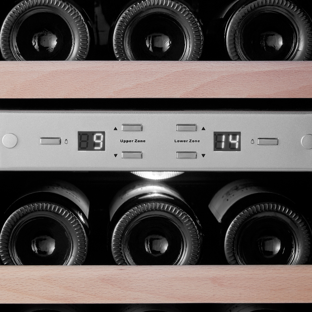 | Особенности | Корпус из стали окрашенной в чёрный цвет Равномерное охлаждение и качественная циркуляция воздуха Защита от УФ-излучения с помощью двойного стекла Мягкая светодиодная подсветка в каждой зоне Простая система настройки уровня температуры Автоматическое размораживание Диапазон допустимых значений уровня влажности 50-80% В обязательном порядке оставьте зазор 5 см с каждой стороны от винного шкафа |