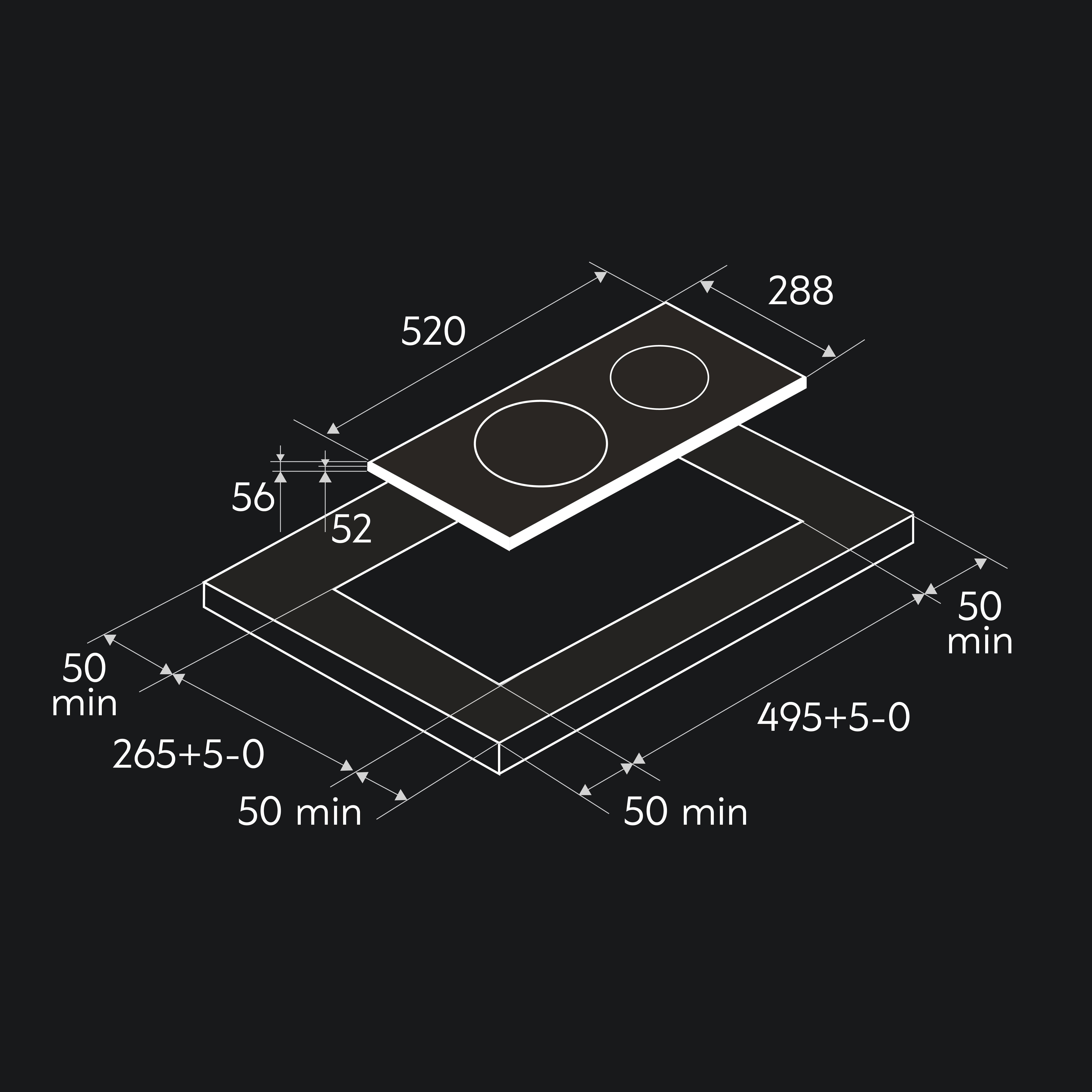 Размеры встраивания, мм: 268×500