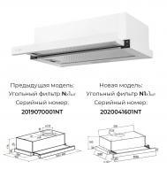 | Дополнительный функционал | • Мотор усиленной мощности • Диаметр воздуховода 120 мм • Потребляемая мощность 102,5 Вт • Давление 210 Па • Рециркуляция 410 — 490 м³/ч • Алюминиевый фильтр в комплекте • Угольный фильтр приобретается отдельно (N/N1 * (х2) (опция) — *Фильтр N1 для моделей с серийными номерами 2020041601-2020043300NT,2020062301 и далее) • LED лампы 1 х 2,5 Вт |