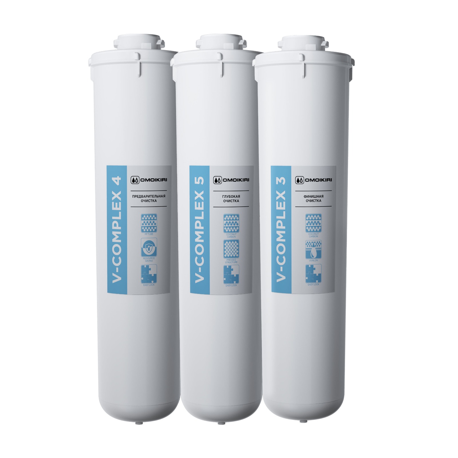 V-Complex 5. Глубокая очистка. Изготовлен по технологии карбонблок с волокном с использованием мелкодисперсного активированного кокосового угля. Благодаря плотной структуре эффективно удаляет из воды органические примеси и активный хлор.