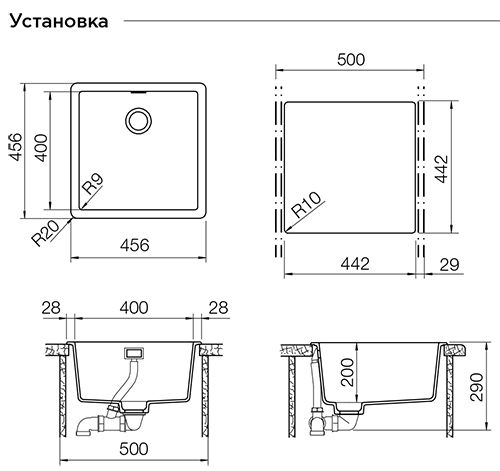 Тип монтажа: Врезная сверху / Под столешницу