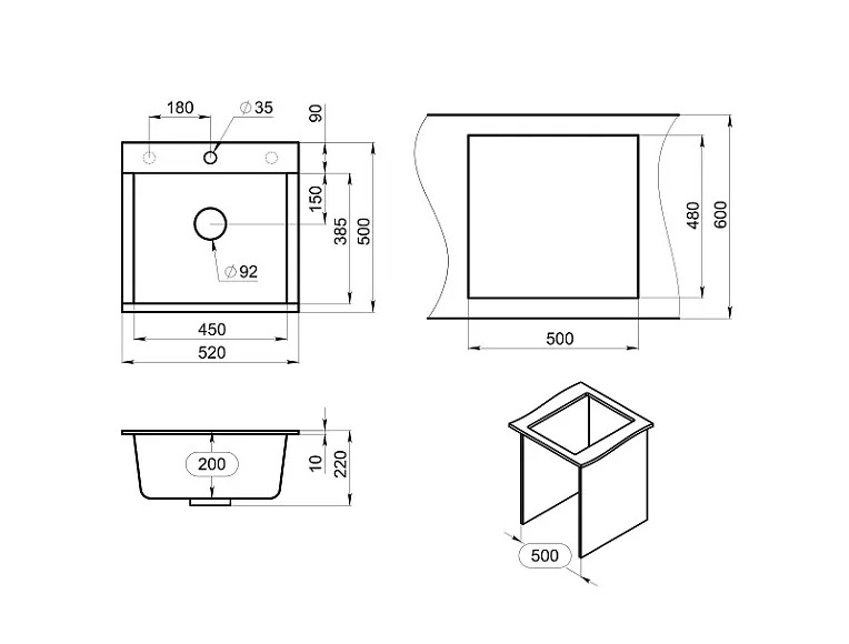 | Ширина шкафа под мойку (мм) | 500 |