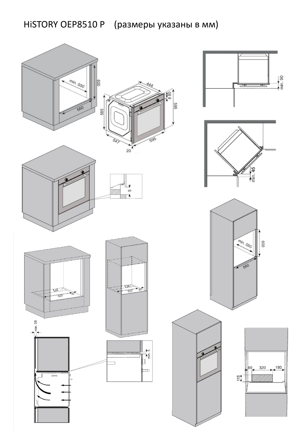 Размер ниши (мм): 600х560х550