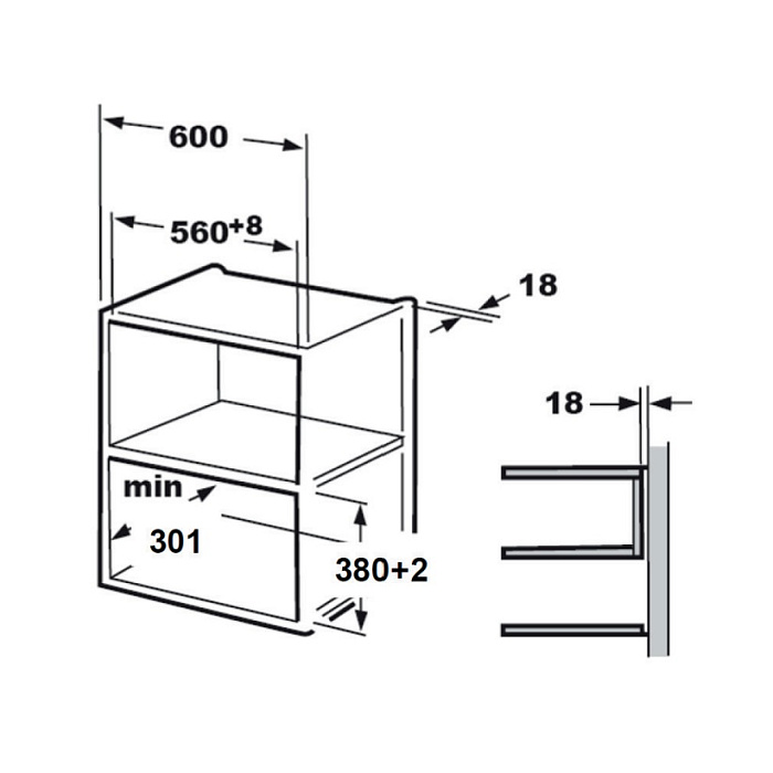 Размеры встраивания (ШхГxВ) (мм): 560х300х382