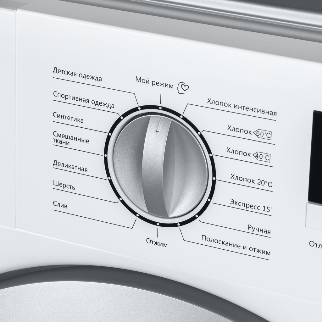 | Основные режимы стирки | Смешанные ткани Хлопок интенсивная Хлопок 60/40/20֯С Шерсть Деликатные ткани Экспресс 15” Ручная стирка Детские вещи Спортивная одежда Синтетика Отжим Слив Полоскание и отжим Мой режим |