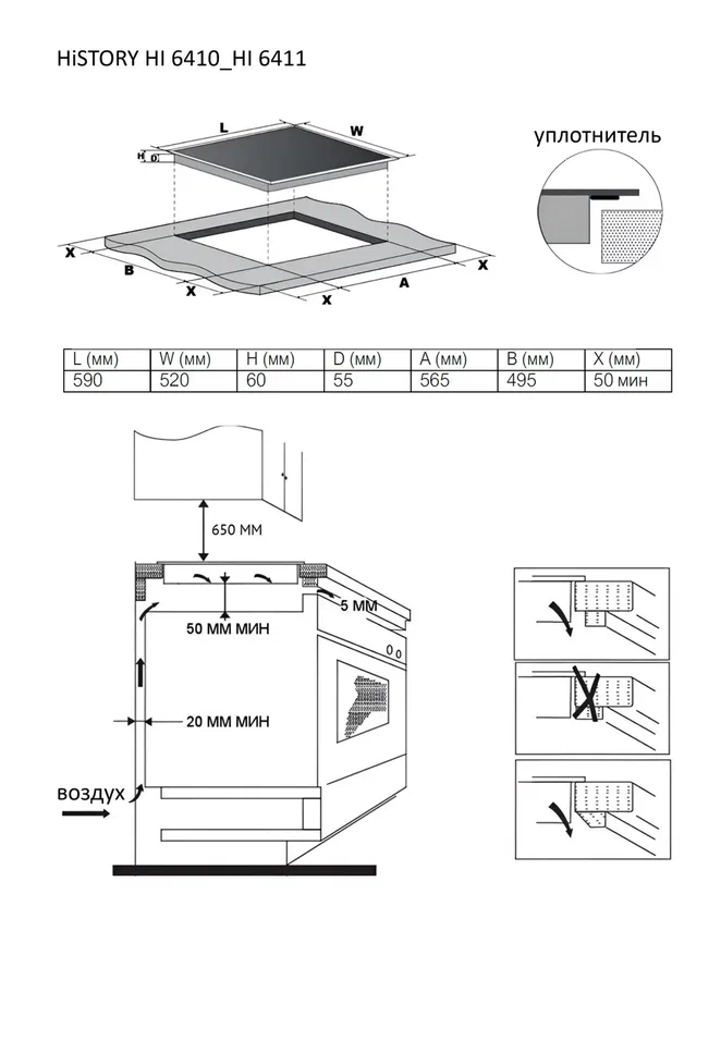 Размер ниши для встраивания, мм 565х495