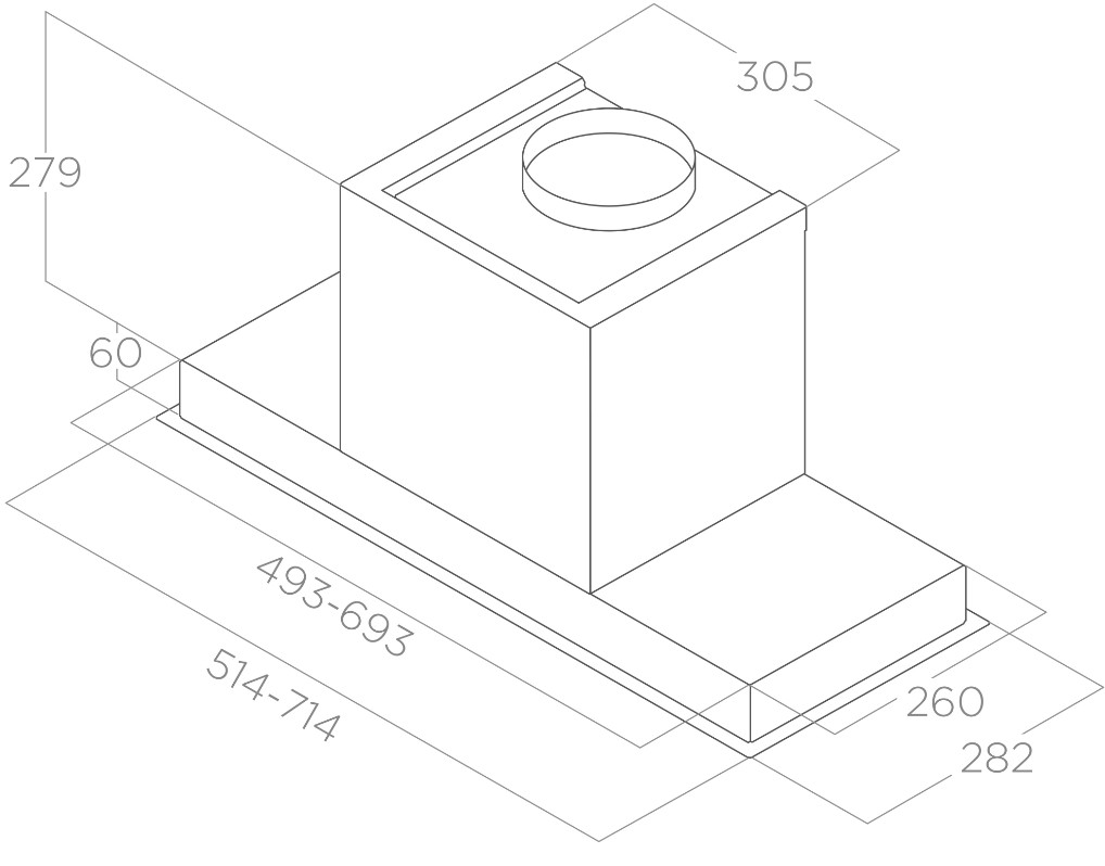 | Дополнительный функционал | Индикация обслуживания фильтров Таймер Интенсивный режим Периметральное втягивание воздуха ELICA CONNECT - Управление через приложение Elica Connect DIM LIGHT - Плавное изменение уровня яркости подсветки вытяжки TUNE WHITE - Регулирует тон цвета от холодного белого до теплого белого |