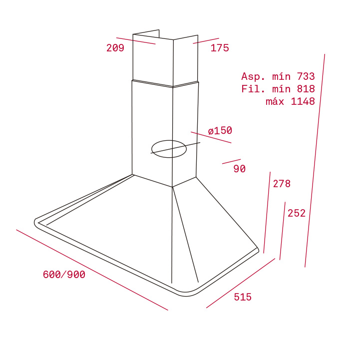 ▪ Пристенная пирамидальная вытяжка 90 см