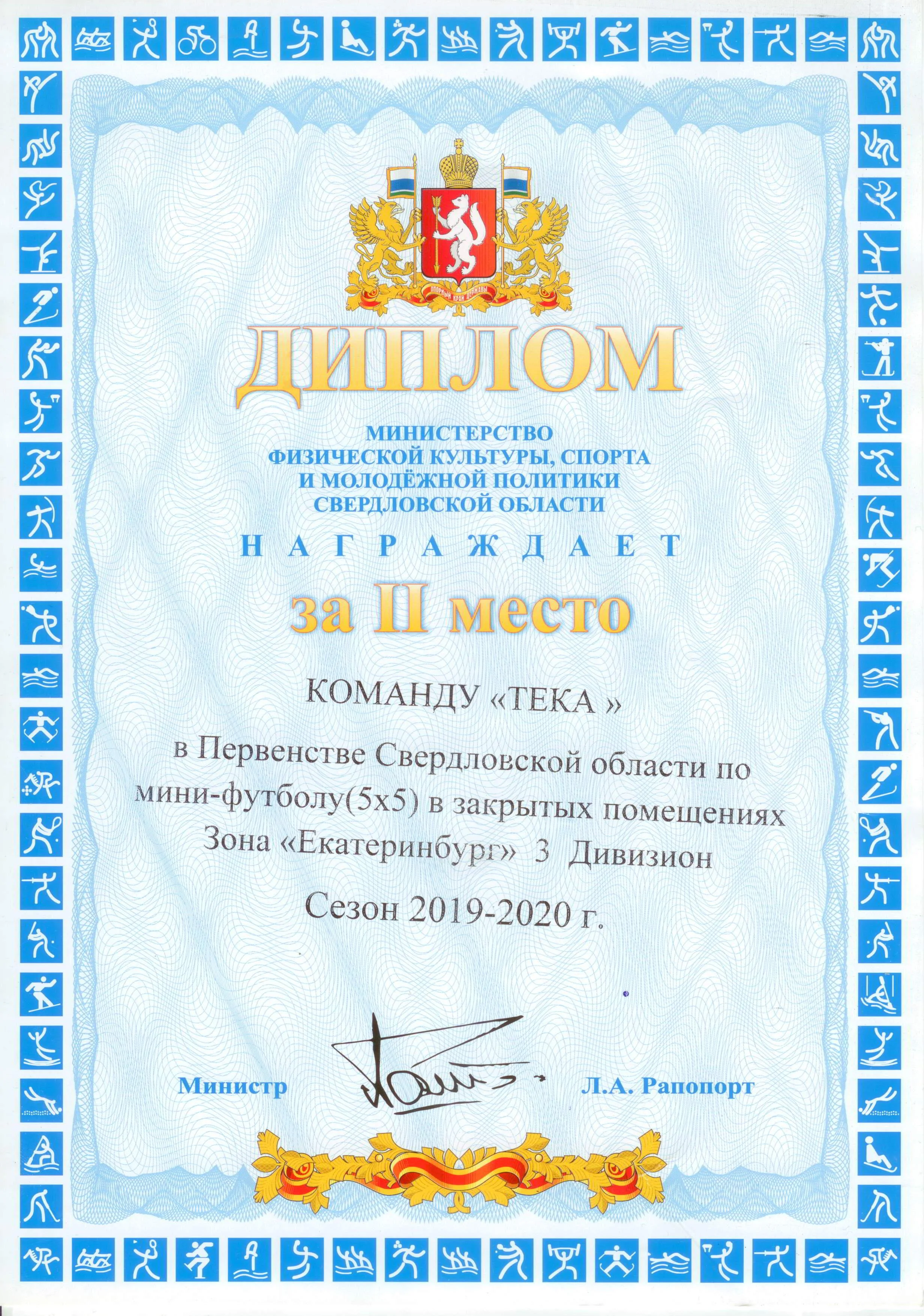 • Футбольной команды ТЕКА г. Екатеринбург